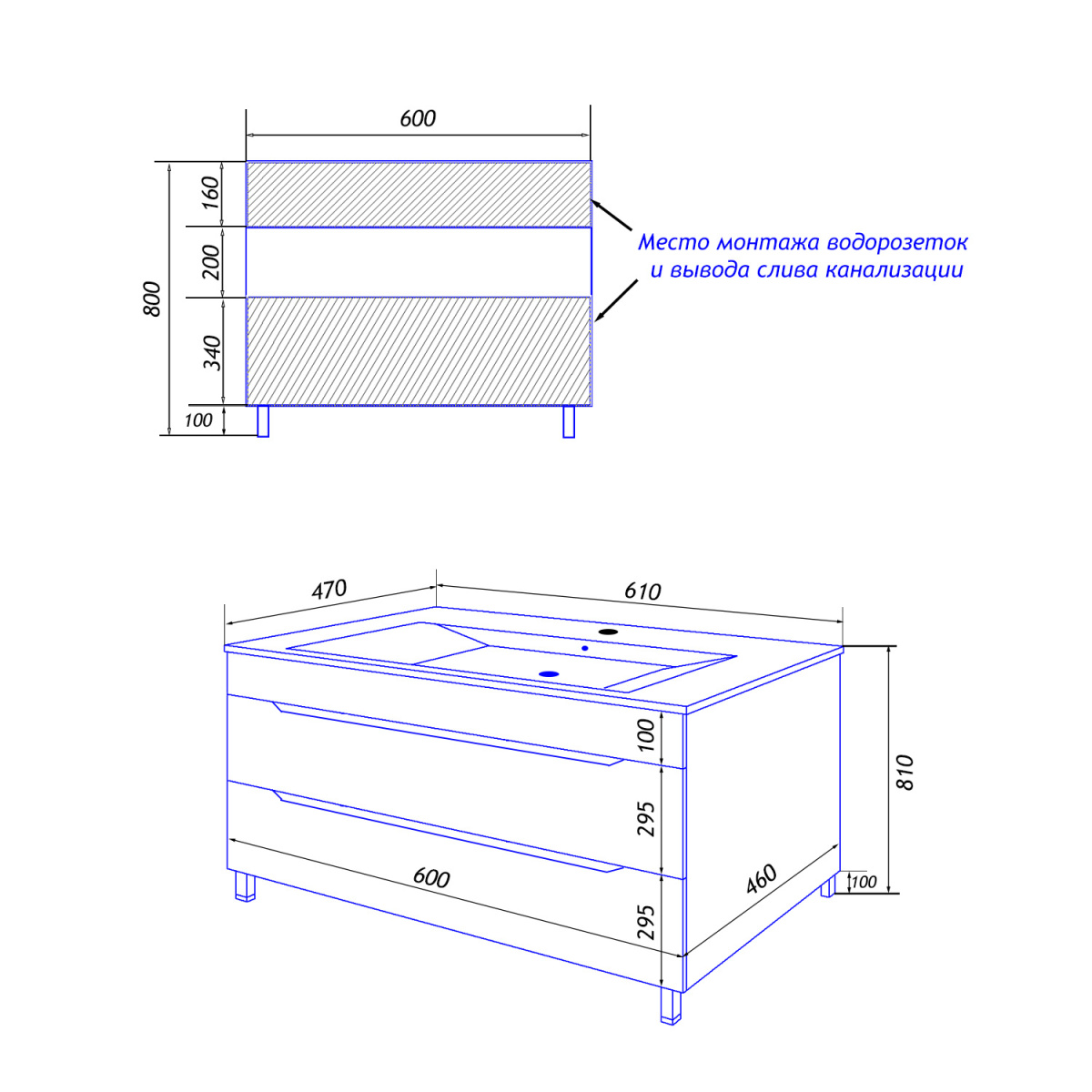 Комплект Тумба Loranto Florena 60 600х470х810 напольная, с раковиной Azario Leon, светлый бетон CS00086990