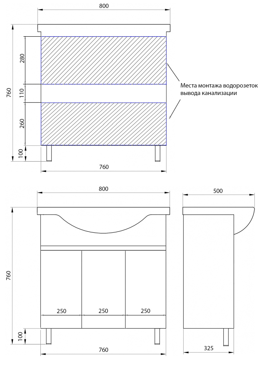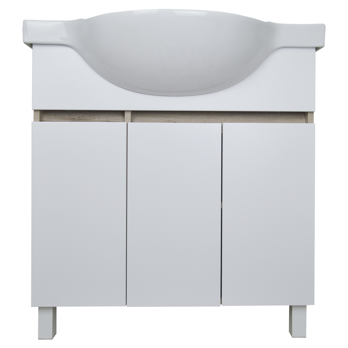Тумба в собранном виде, напольная, имеет три распашных фасада на доводчиках Boyard.