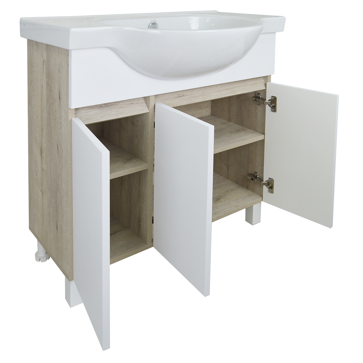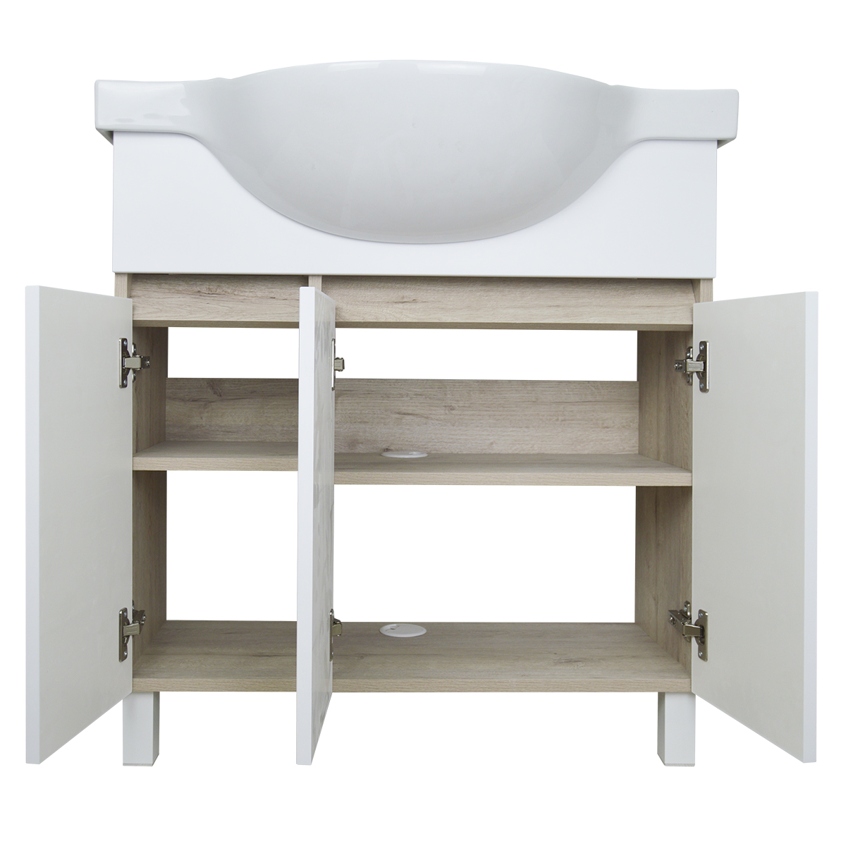 Корпус тумбы изготовлен из влагостойкого ЛДСП в цвете Дуб Кантри.