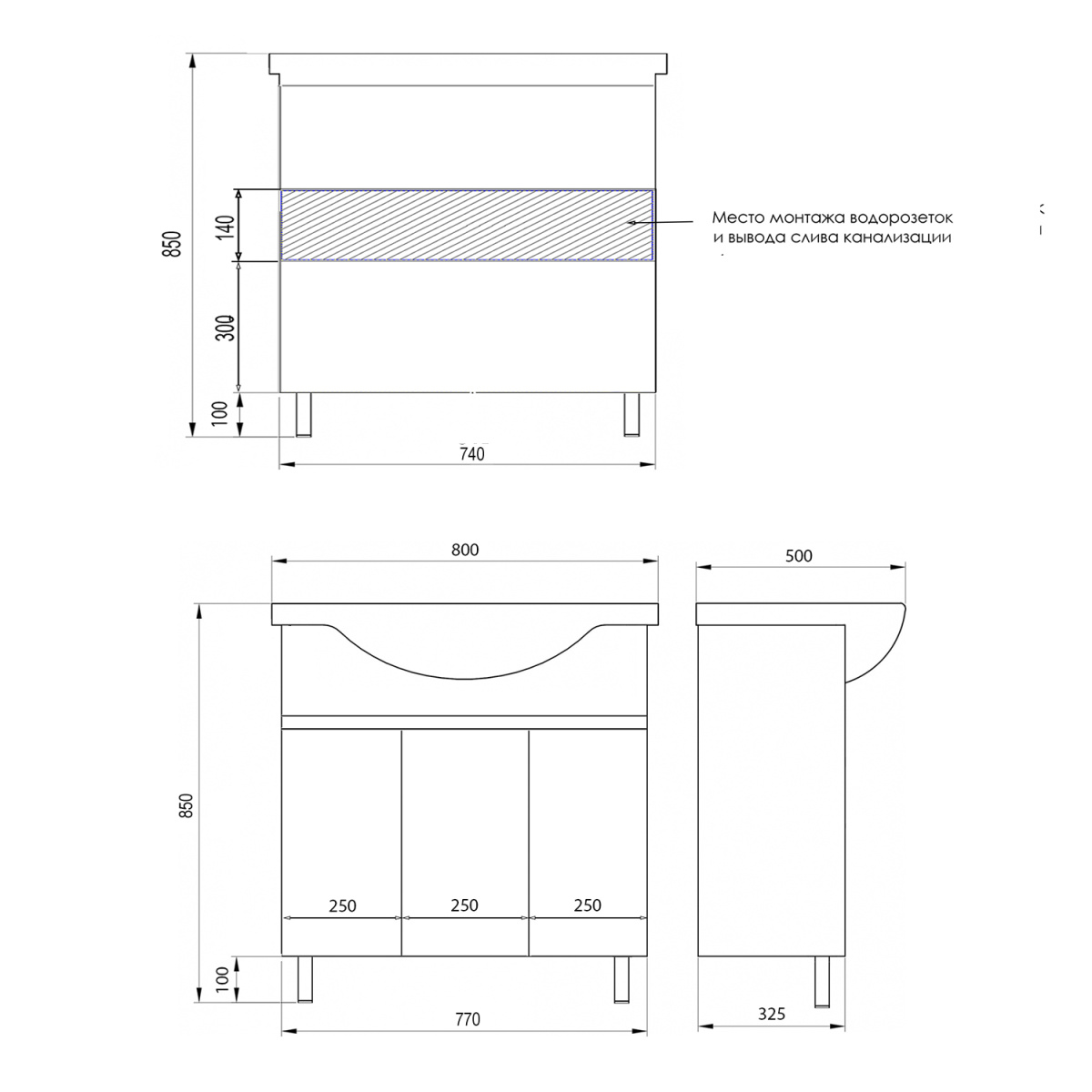 Комплект Тумба Loranto Ирис 80Н напольная, с раковиной Teo 80, белый CS00093567