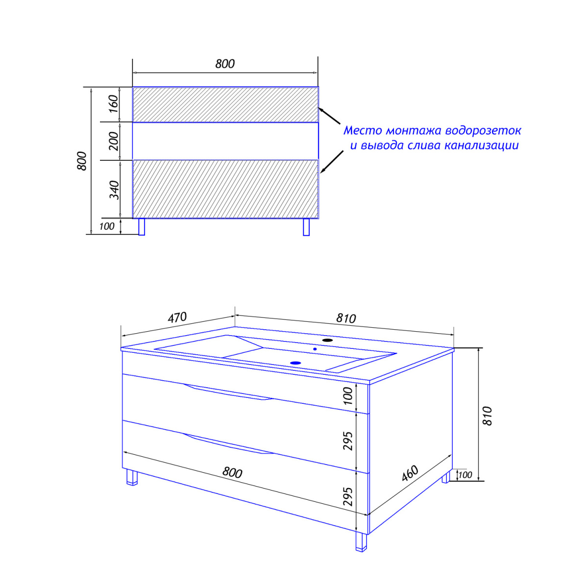 Комплект Тумба Loranto Santorini 80 810х460х810 напольная, с раковиной Leon, Белый Глянец CS00086974