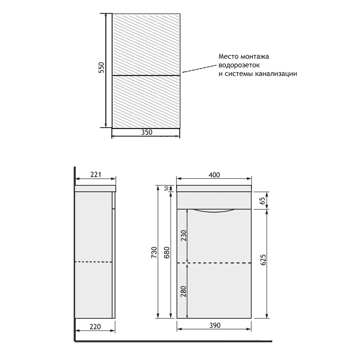 Комплект Тумба подвесная Loranto Алина – 40 400х220х730 с раковиной Миранда 40 правая, белый CS00087022