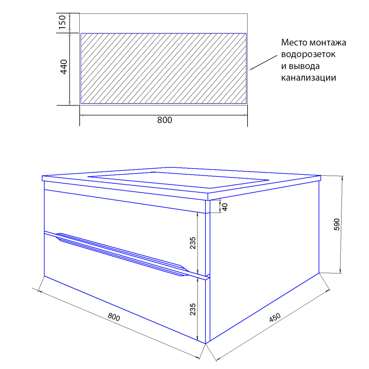 Loranto Арфа Тумба 80/2 800х600х450 подвесная с раковиной Fest 80 CS00044715