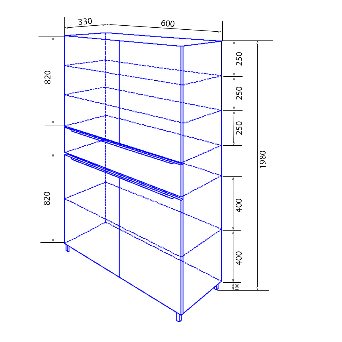 В верхнем распашном фасаде имеется 2 стеклянные полочки, в нижнем – одна полочка из ЛДСП.