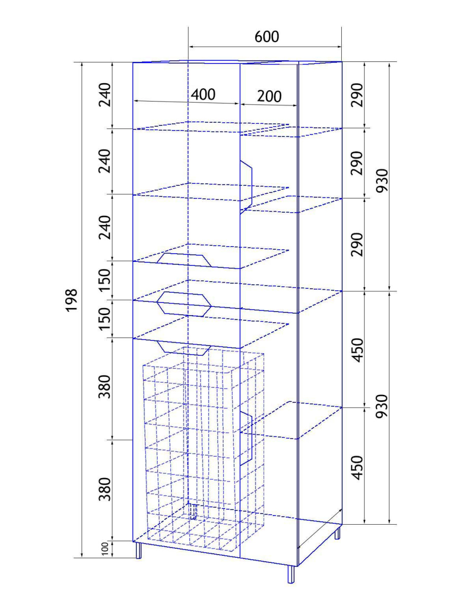Пенал Loranto Стиль 600х1970х330 с корзиной для белья, белый CS00024799