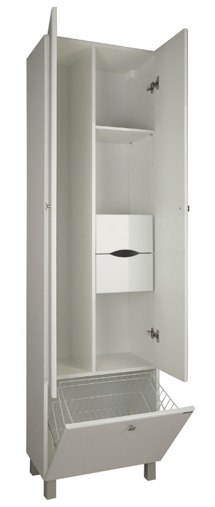 Пенал напольный AQUATON СИМПЛ двухстворчатый, с корзиной для белья, белый 1A137403SL010