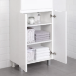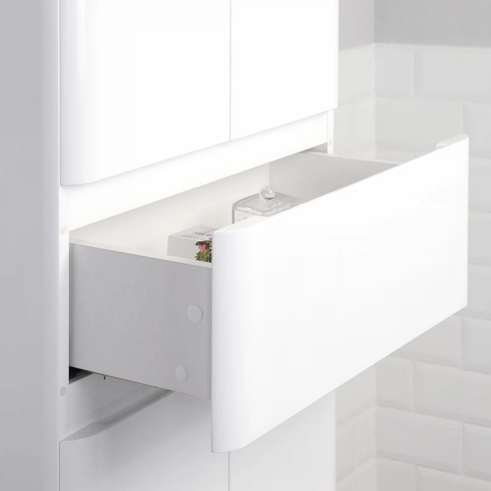 Идеальный белый глянец в сочетании с современным лаконичным дизайном-это коллекция Roberto.Эстетика изящества и минимализма-скругленные фасады,отсутствие лицевой фурнитуры.Напольный пенал выполнен из влагозащищенного МДФ, покрыт белоснежной глянцевой эмалью.Качественные петли с доводчиками и направляющие скрытого монтажа обеспечат плавное выдвижение ящичка,бесшумное закрывание дверок.Вместительные полки позволят разместить бытовую химию,а так же средства личной гигиены.Мебель способна вместить в себя достаточно много вещей.Изысканность,простота и гармоничность-все сошлось в этой прекрасной коллекции!