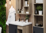 В пенале Onika ТИМБЕР 60.01 удачно сочетаются контрастные цвета и фактуры: серый матовый фасад с покрытием SoftTouch, корпус цвета дуба с роскошной текстурой, черная матовая металлическая фурнитура.
