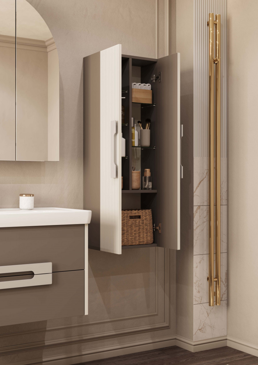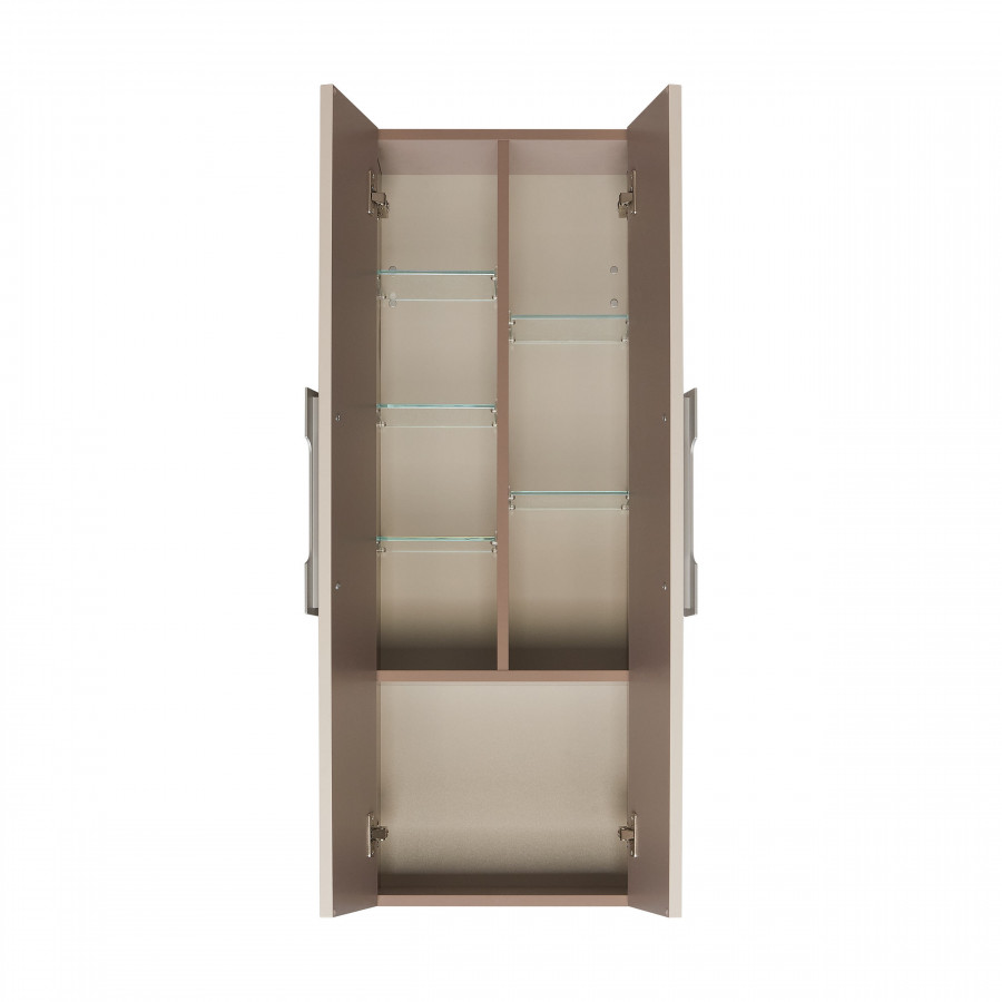 Коллекция мебели Ар-Деко воплощает изящество и элегантность этого уникального направления. Каждая деталь коллекции от массивных хромированных ручек до фрезерованных панелей – продумана до мелочей. Двустворчатая шкаф-колонна выполнена из высококачественной МДФ, покрытой матовой пленкой. Вертикальная фрезеровка на фасадах создает эффект визуального увеличения высоты изделия, придавая ему элегантность и изящество. В шкаф-колонне внутреннее пространство разделено на две половины, в каждой из которой есть регулируемые стеклянные просветленные полочки. Эти полочки также установлены на специальных держателях, что предотвращает опрокидывание предметов. Фасады-створки открываются при помощи удобной ручки, а благодаря петлям с доводчиками обеспечивается плавное закрывание, что гарантирует бесшумность и комфорт использования мебели. Дополнительное пространство предусмотрено для хранения высоких предметов, высота полезного пространства – 300 мм.