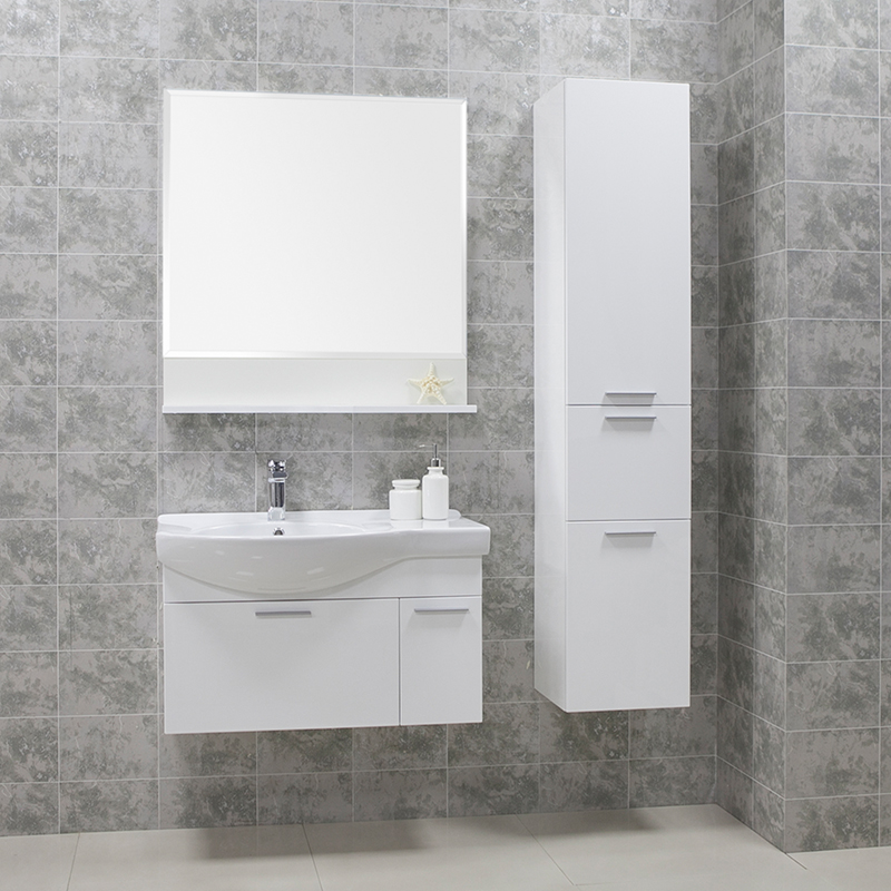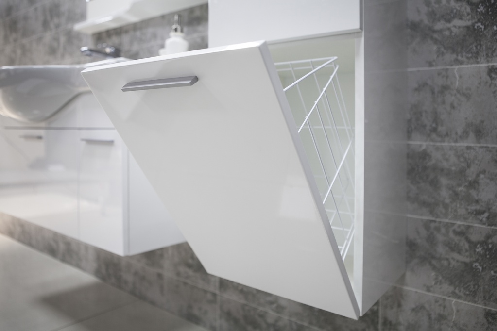 Пенал с большим выдвижным ящиком и фасадом-створкой в верхней части, за которым установлены регулируемые по высоте полки. В нижней части шкафа расположена вместительная бельевая корзина. Шкаф-колонна оснащен петлями с интегрированным доводом. Верхний фасад-створка при монтаже устанавливается на левую или правую сторону. В зависимости от этого колонна будет левой или правой.