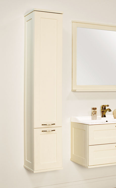 Коллекция Леон создана специально для любителей классического дизайна, предпочитающих современные материалы. Мебель отделана пленкой с фактурой под натуральное дерево. В нижней части колонны установлена бельевая корзина, а в верхней – полки.