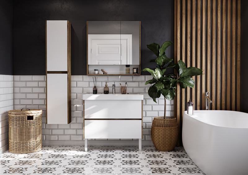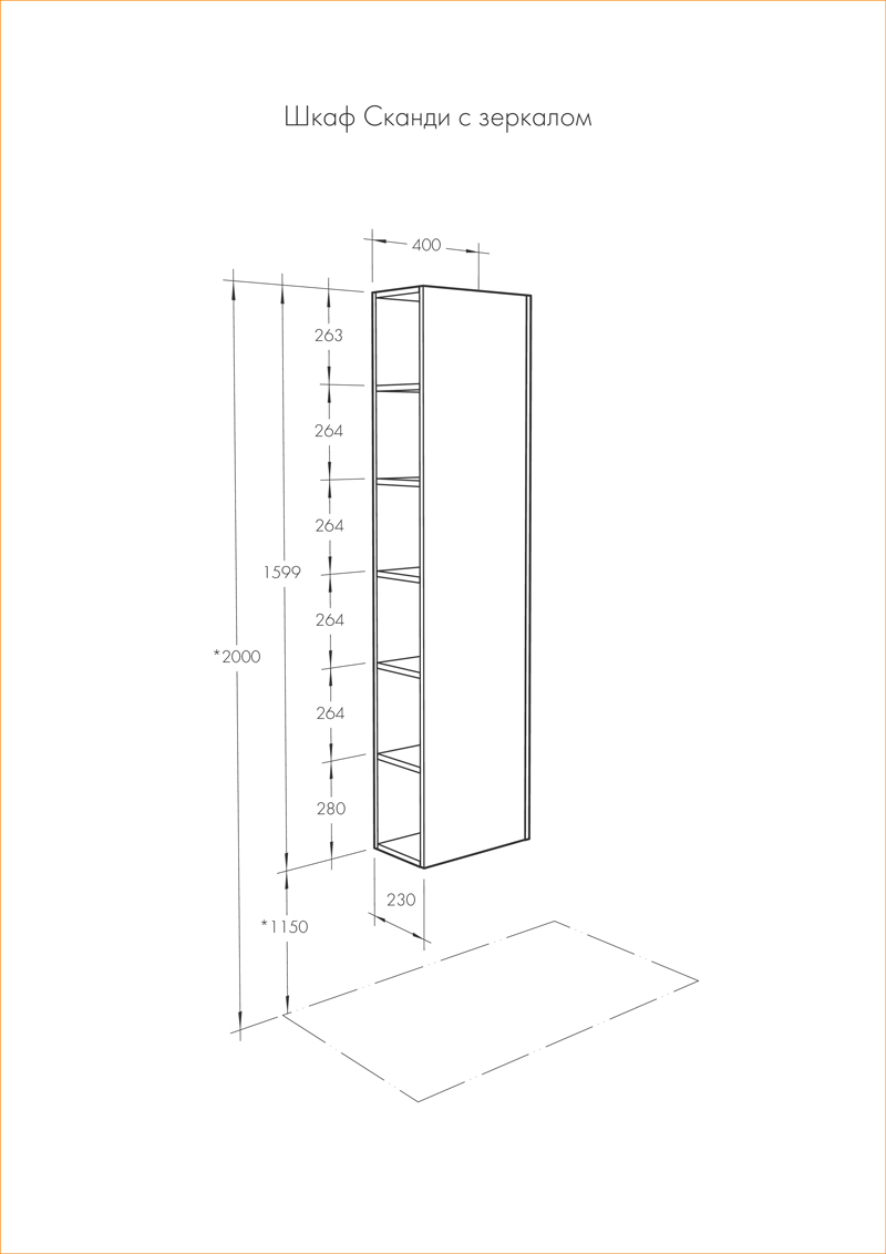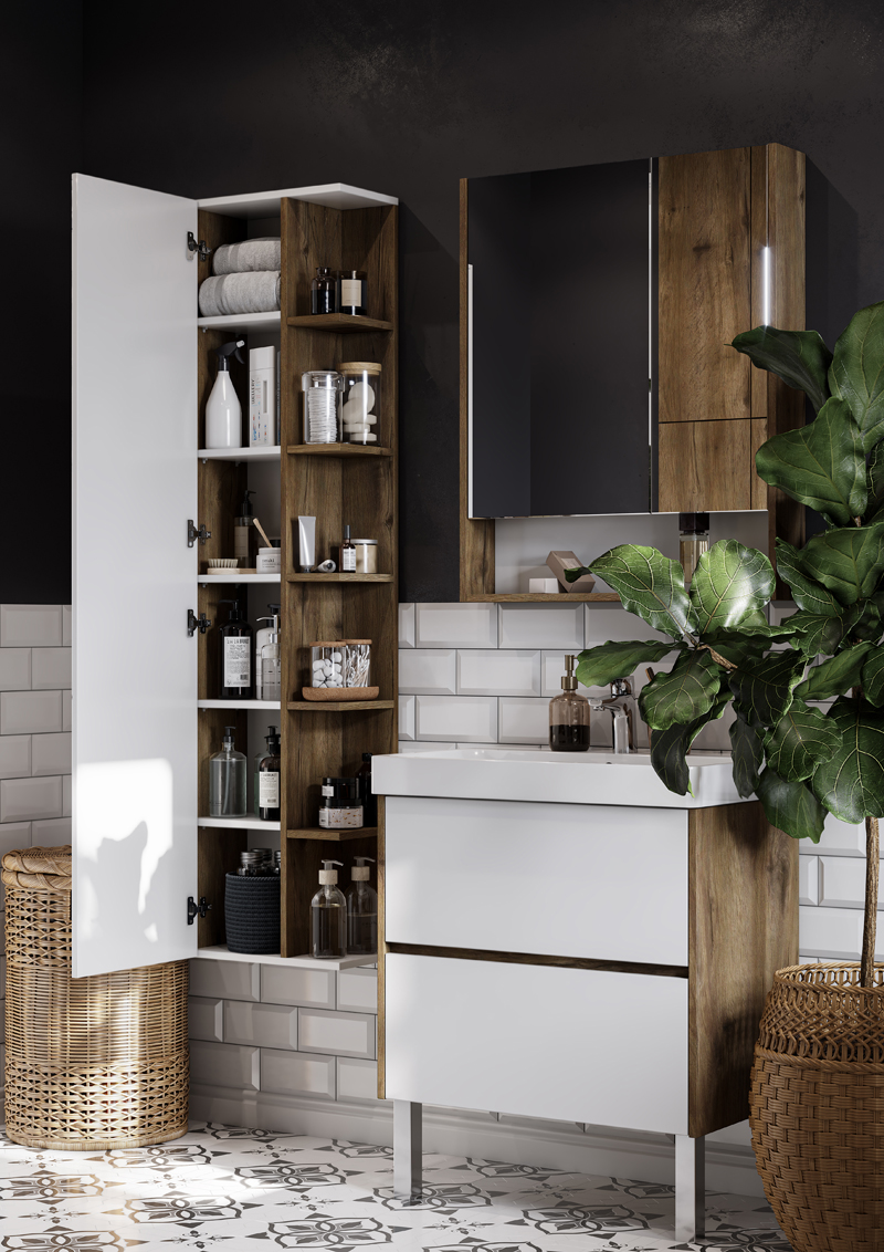 Пенал подвесной AQUATON Сканди с зеркалом, дуб рустикальный 1A253403SDZ90