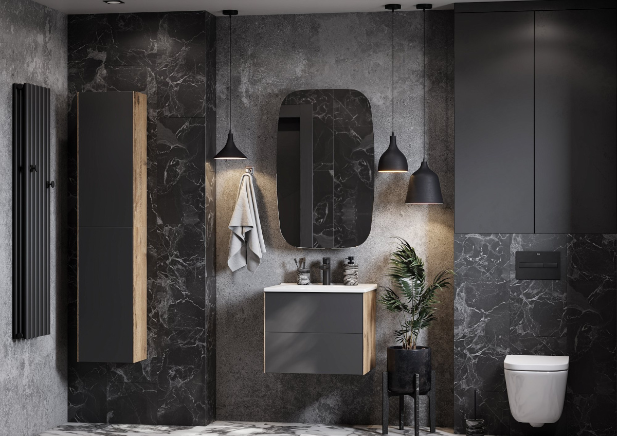 Шкаф AQUATON Сохо подвесной, Дуб Веллингтон/Графит софт 1A258403AJA00