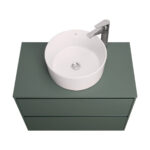 Столешница из МДФ в пленке зеленого матового цвета обладает простым, но привлекательным дизайном. Она подойдет для комплектации тумб коллекции Ona накладными раковинами. Отсутствие выреза в столешнице позволяет установить любую накладную раковину.
