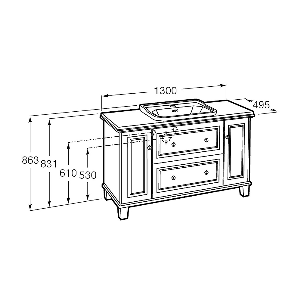 Столешница Roca Carmen 130.0х49.5 мраморная, Белый 7.8571.4.242.0