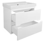 Тумба в собранном виде. Фасад и бока крашеные. Два выдвижных ящика. Между верхним и нижним ящиком встроенная светодиодная подсветка Комплектуется умывальником Fest 60.