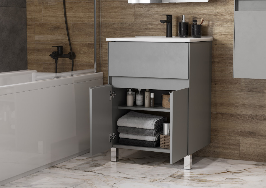 Коллекция мебели ФОРЕСТ вдохновлена природными мотивами и выполнена в естественных оттенках. Минималистичный сдержанный дизайн позволяет органично вписать ее в большинство современных интерьеров. В тумбе максимально удобная эргономика: функциональный ящик и вместительно пространство за фасадами-створками. В ящике организована система хранения для удобного и комфортного использования: две регулируемые планки. Верхняя часть фасада-створки обработана под ручку L-профиль, за створками скрываются две полочки, одна из которых регулируемая, а также немного утоплена внутрь для комфортного хранения высоких предметов. Тумбы коллекции ФОРЕСТ могут устанавливаться как на опоры, так и в подвесном варианте: в комплект входят две регулируемые опоры.