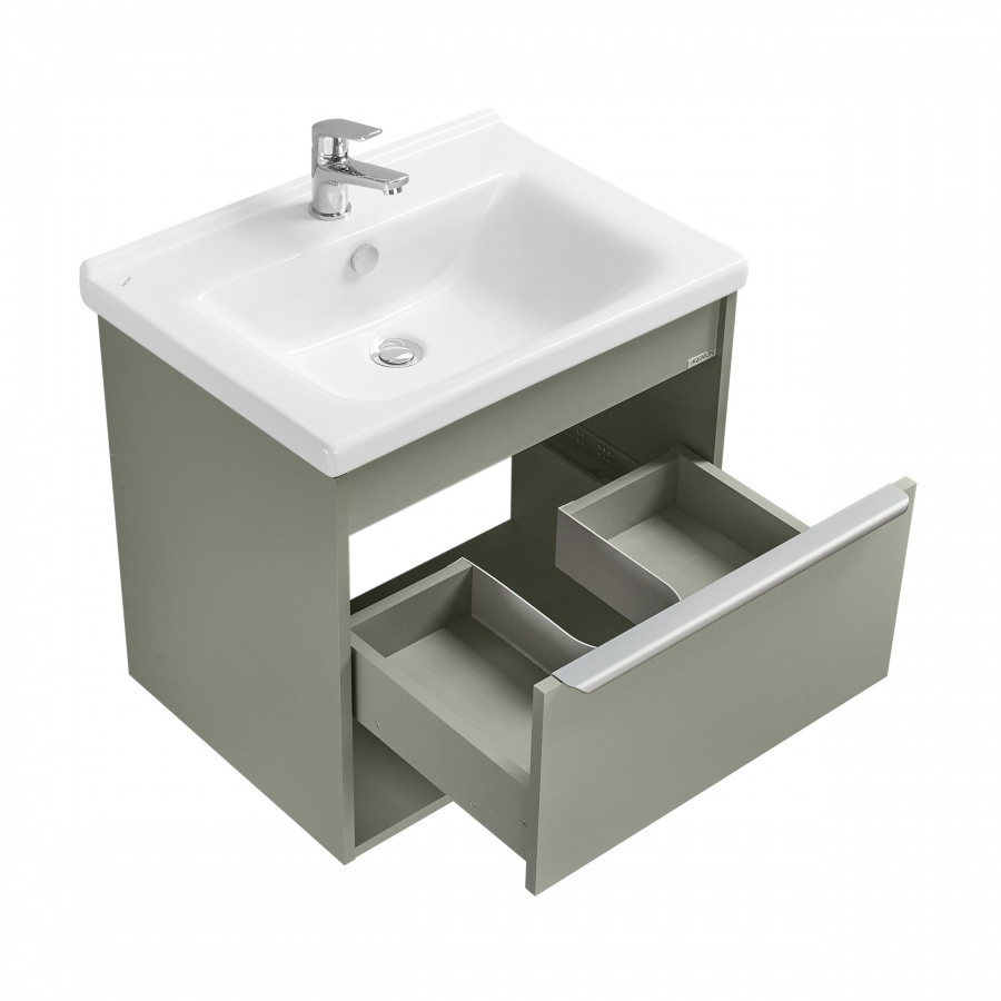 Тумбы для ванной комнаты коллекции Хоуп — это идеальное сочетание простоты линий и функциональности, которое преобразит ваше пространство. Элегантные линии и современный дизайн подчеркивают утонченность интерьера, а использование влагостойкой ЛДСП гарантирует долговечность и простоту в уходе. Удобная ручка добавляет нотку изысканности, а открытая ниша предоставляет возможность организовать пространство так, как вам удобно — будь то размещение любимых аксессуаров или необходимых принадлежностей. Корпус и фасад выполнены из влагостойкой ЛДСП в светло-зеленом цвете. Ручка изготовленная из алюминия, она не только привлекает внимание своим эстетичным дизайном, но и имеет надежный и удобный хват. Направляющие полного выдвижения скрытого монтажа с доводчиком позволят использовать весь функционал ящиков бесшумно и с комфортом, а открытая ниша дает возможность убирать туда необходимы принадлежности, чтобы они всегда были под рукой.