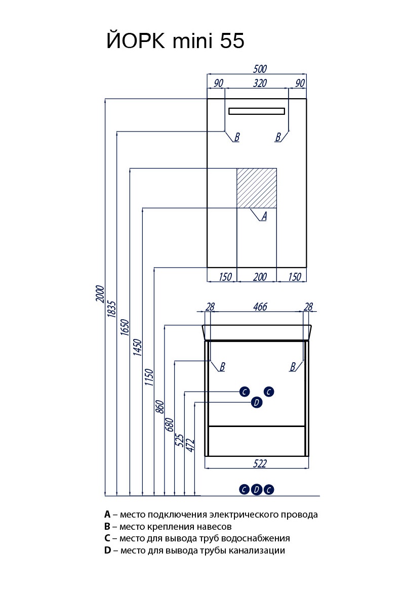 Тумба под раковину AQUATON Йорк 55М подвесная, белый ясень 1A170801YOAV0