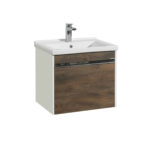Коллекция выполнена в популярном размере 600 мм. В размере 600 мм к тумбе предлагается зеркальный шкафчик.