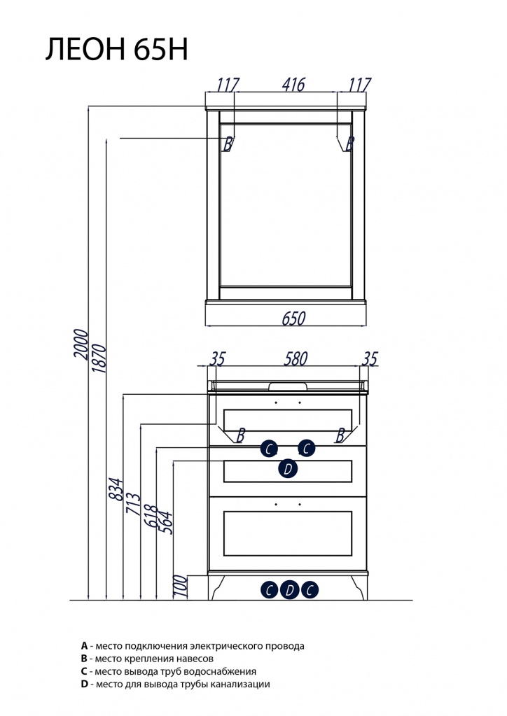 Тумба дополнительно снабжена надежными мебельными навесами. В тумбе установлены 3 ящика, и, помимо стандартного подключения водоснабжения и канализации (из стены), предусмотрена возможность подключения труб снизу. Тумба комплектуется раковиной из литого мрамора собственного производства АКВАТОН. Изящные формы, пристенные бортики и площадки делают ее очень удобной.