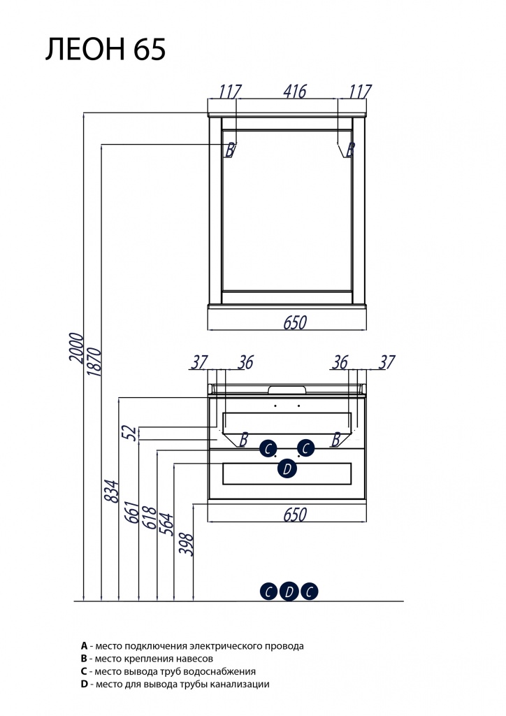В тумбе установлены 2 ящика, и помимо стандартного подключения водоснабжения и канализации (из стены) предусмотрена возможность подключения труб снизу.