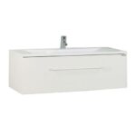 Тумба выпускается с выдвижным ящиком, который оснащен системой плавного закрывания и антискользящим ковриком.