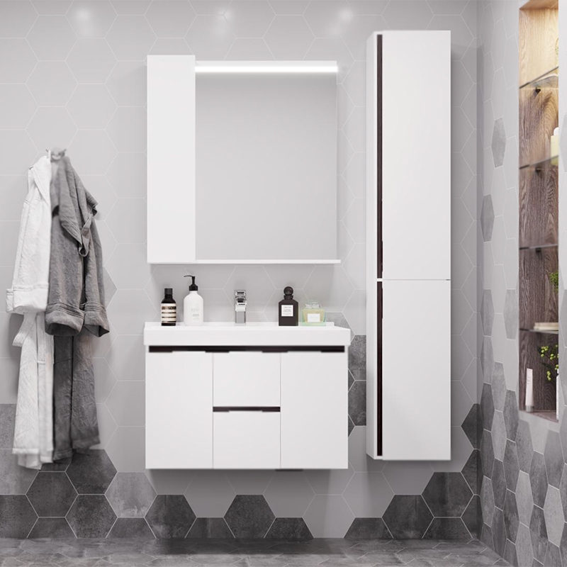 Подвесная тумба под раковину Акватон Рене 80 1A258601NRC80 с двумя выдвижными ящиками и двумя распашными дверцами.