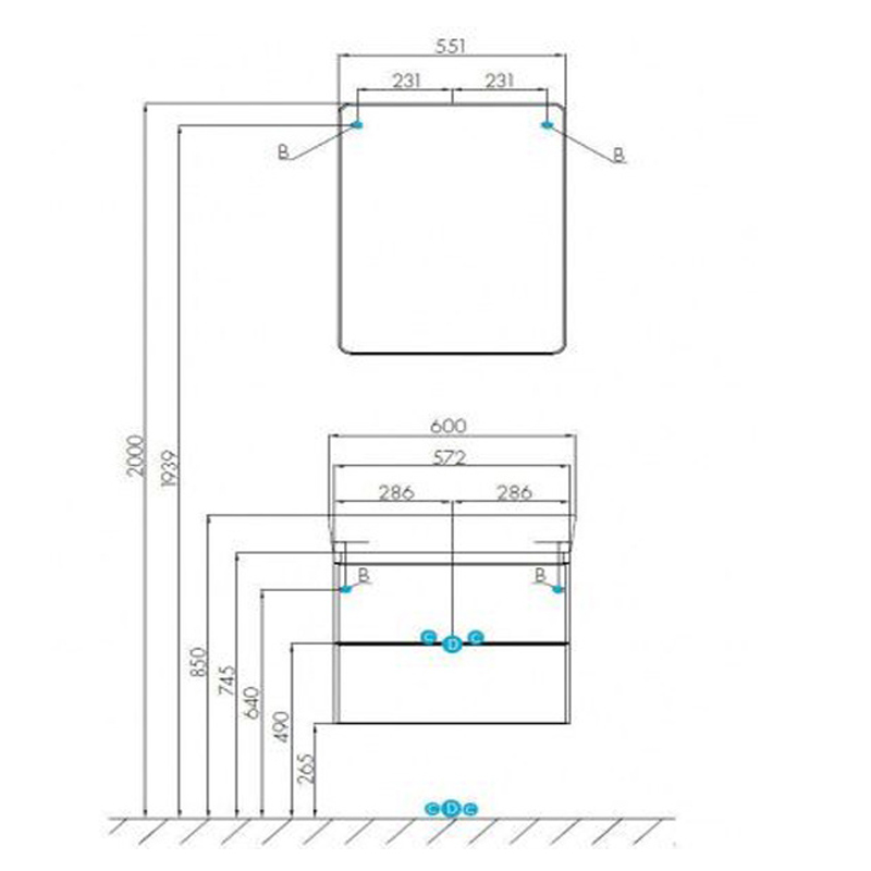Тумба под раковину AQUATON Скай 60 подвесная, белая 1A238201SY010
