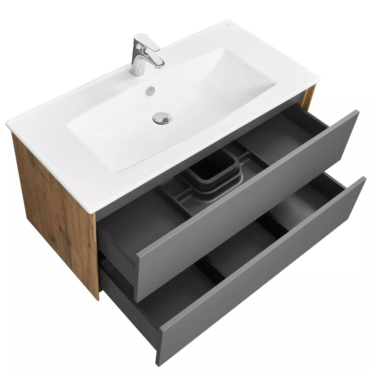 Тумба под раковину AQUATON Сохо 100 подвесная, Дуб Веллингтон/Графит софт 1A258201AJA00