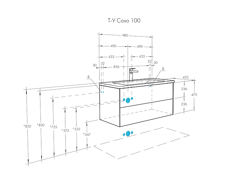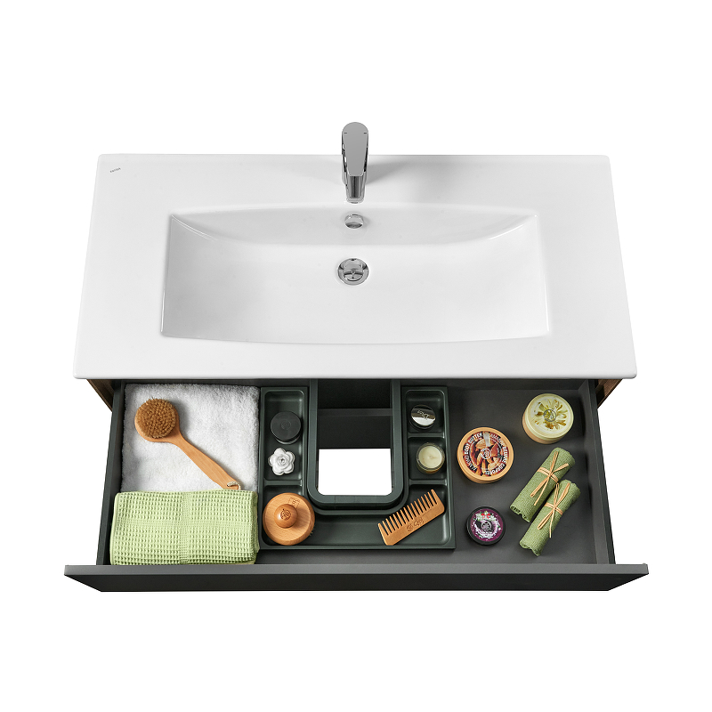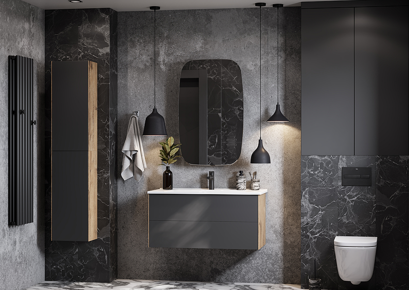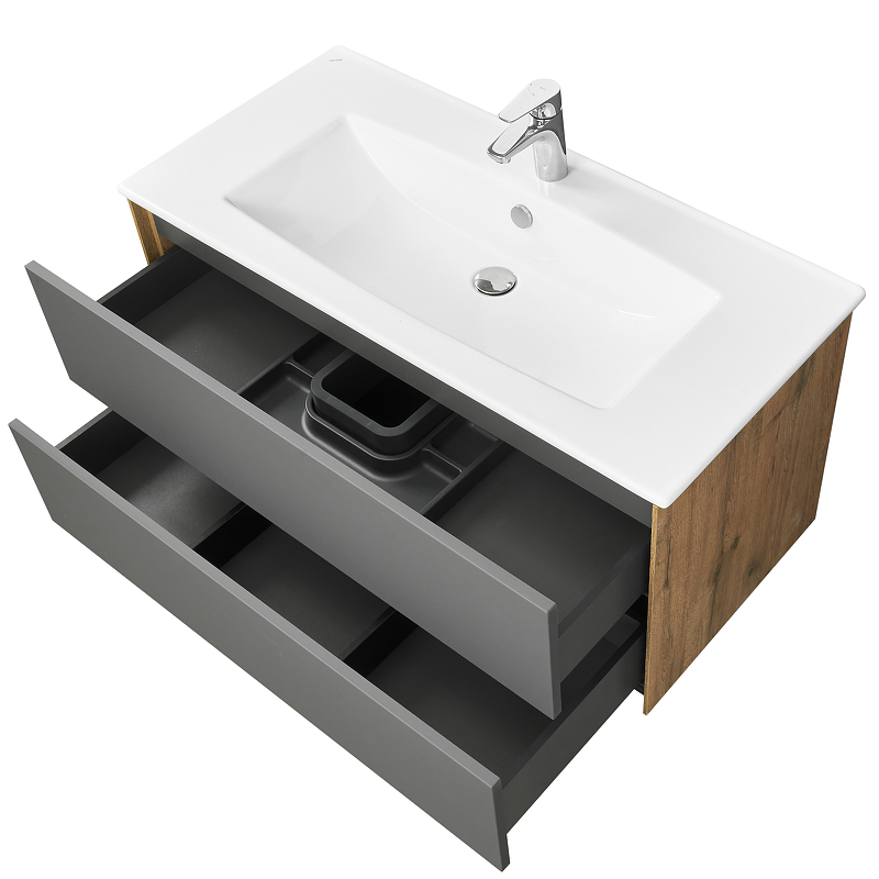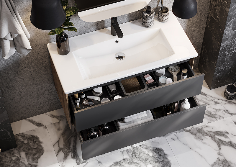 Тумба под раковину AQUATON Сохо 100 подвесная, СлэйтГалька серая 1A258201AJ9A0