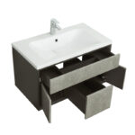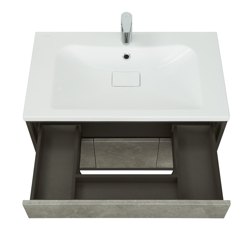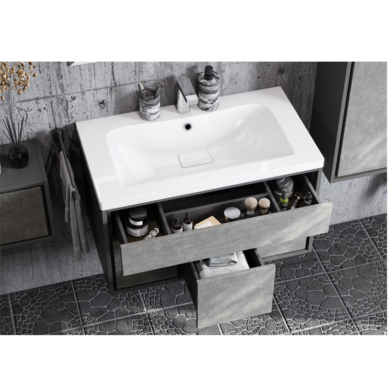 Подвесная тумба Уэльс 80 от AQUATON в стиле лофт создана для истинных ценителей индустриального шика. Глубокий благородный цвет фасадов авеллино грей в сочетании с внутренней отделкой в оттенке тёмный шоколад придаёт модели актуальное звучание, отражая эстетику современной роскоши. Корпус из влагостойкой ЛДСП и фасады из МДФ покрыты матовой пленкой. Отсутствие лицевой фурнитуры подчеркивает сдержанный лаконичный дизайн модели. Тумба предлагает оптимальную систему организации пространства: два вместительных ящика, верхний и центральный, выдвигаются простым нажатием благодаря удобной системе push-to-open, а справа и слева за фасадами-створками скрыты дополнительные отсеки для хранения.