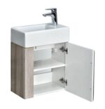 – за распашным фасадом расположена регулируемая полка для хранения моющих средств