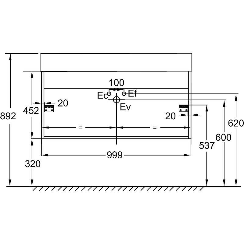 Габариты корпуса тумбы (ШхВхД): 999х452х452 мм.