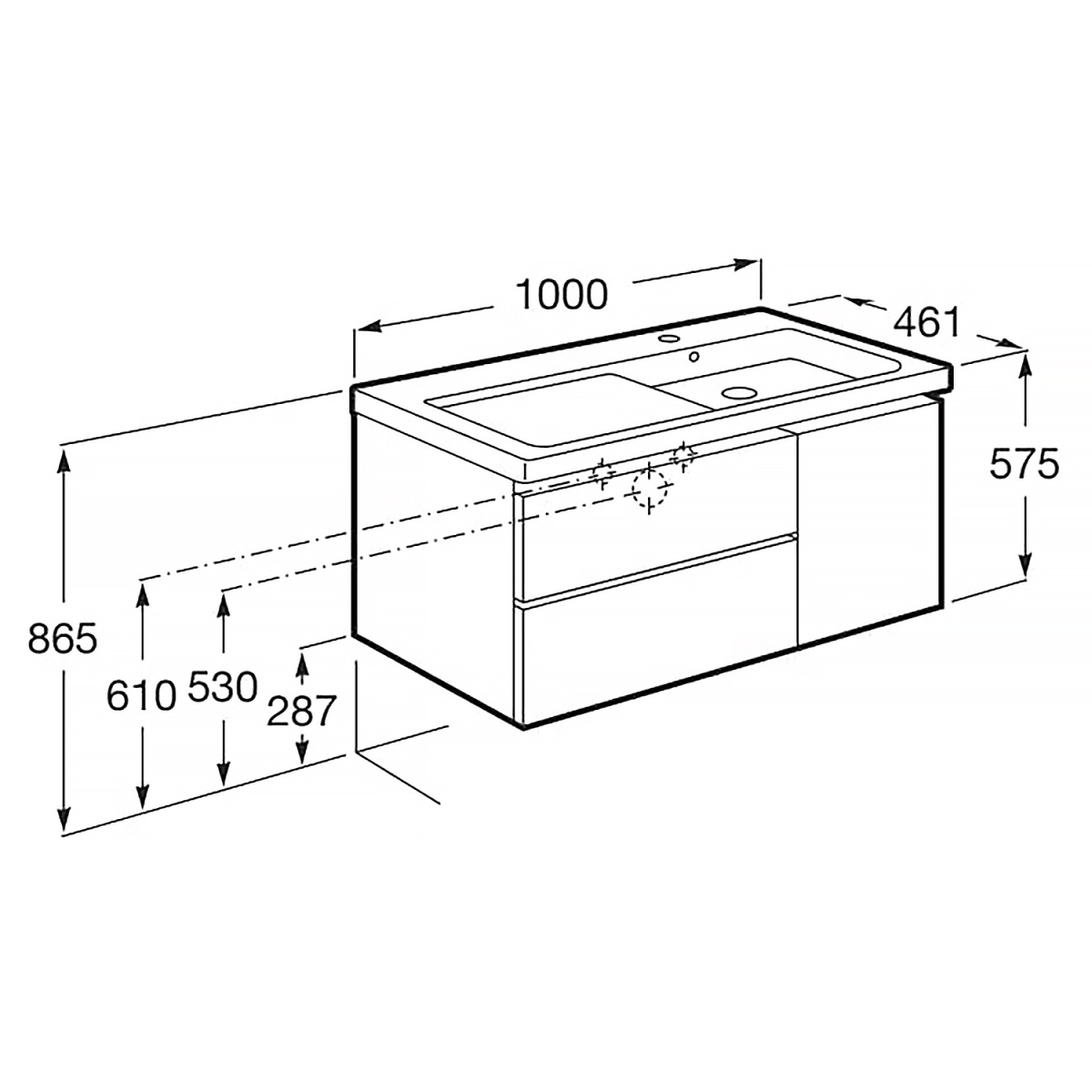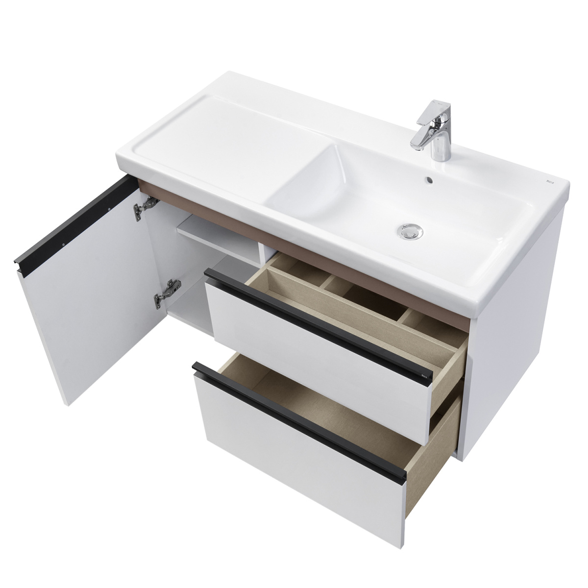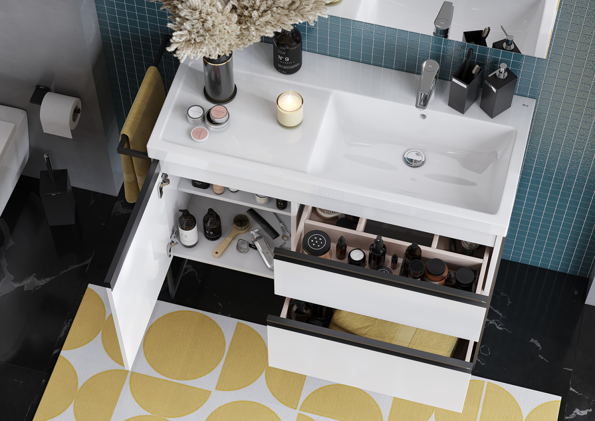 Тумба под раковину Roca DOMI 1000 мм, правая, подвесная, 2 ящика, белый глянец A857478806
