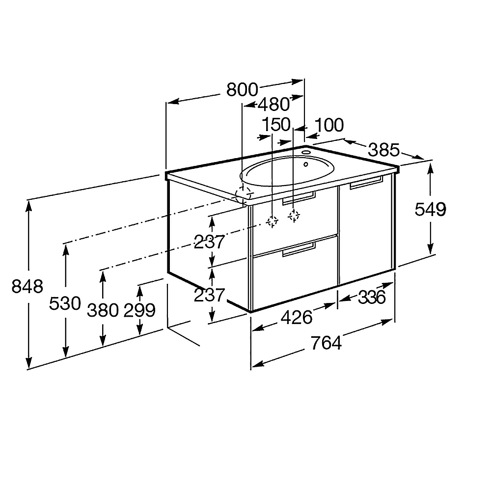 Тумба для раковины Etna в современном стиле от испанского бренда Roca, выполненная из влагостойкой высококачественной ЛДСП и МДФ с ящиками и распашной дверцей с доводчиками.