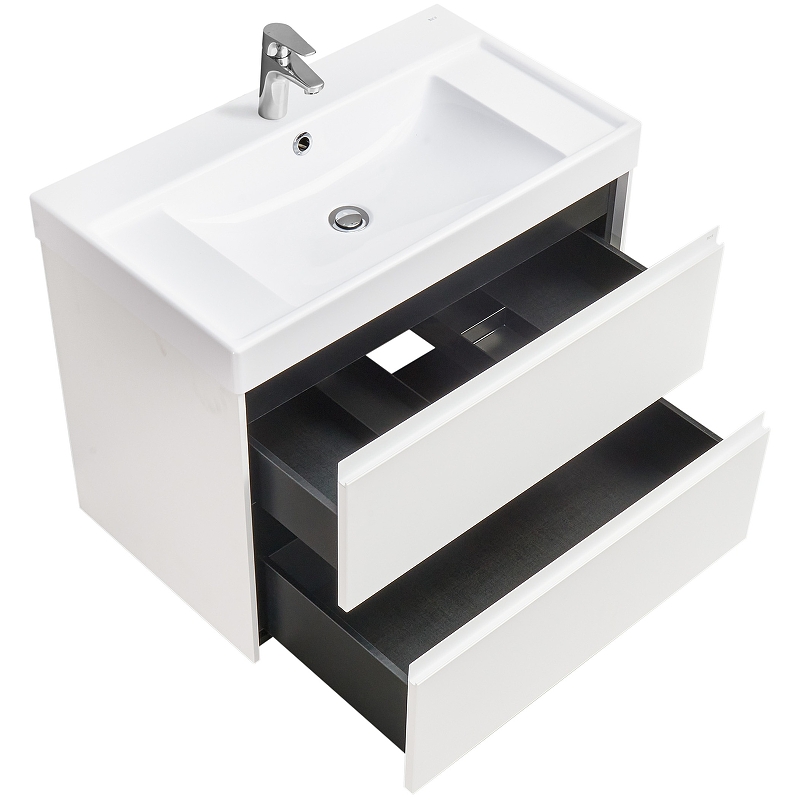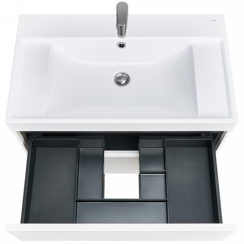 В обоих ящиках находятся противоскользящие коврики, а верхний ящик снабжен также встроенной организацией пространства – эстетика и идеальный порядок в ванной комнате.