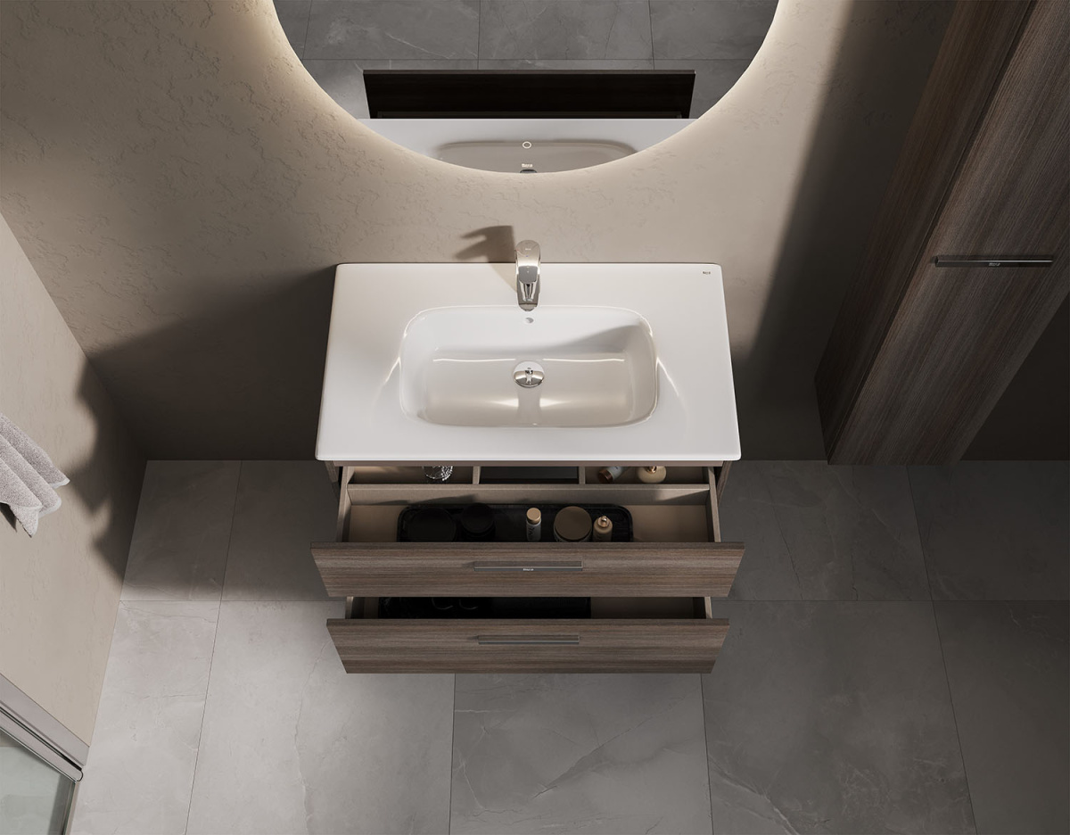Тумба под раковину Roca Victoria 80 подвесная, 2 ящика, городской дуб A857470402
