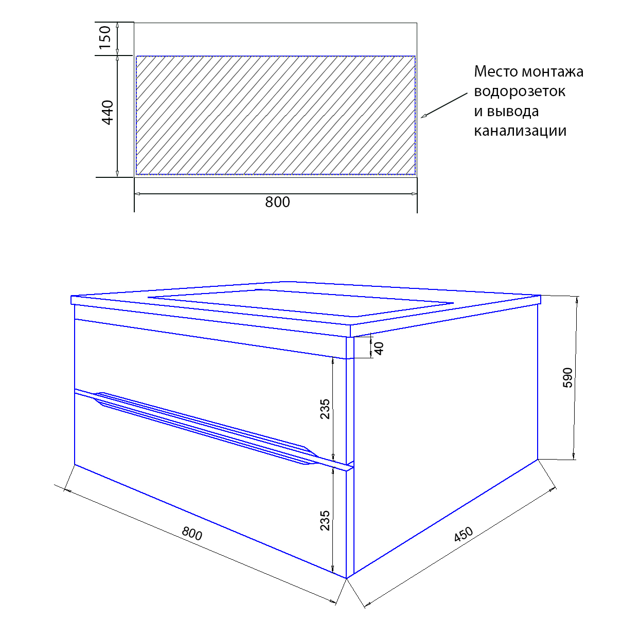 Тумба подвесная Loranto Арфа 80/2 (800х600х450) с раковиной Fest 80, без подсветки CS00052132