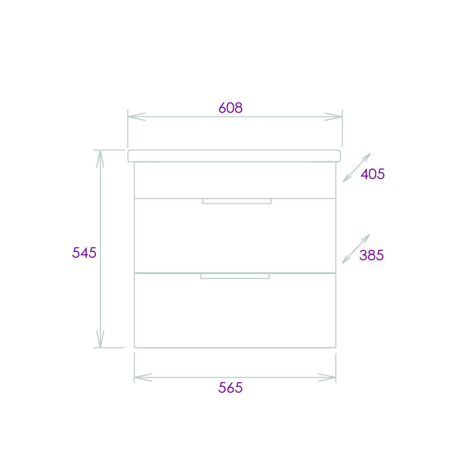 Тумба имеет два ящика, снабженные системой плавного закрывания. Нижний предназначен для больших предметов, а верхний, имеющий удобную систему организации пространства, – для мелких аксессуаров.