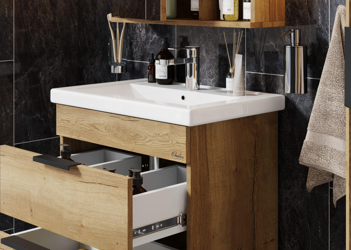 Подвесная тумба Onika ЛЕГРАН 60.13 – это сочетание насыщенного древесного декора и благородства металла: роскошная текстура и натуральный цвет дуба дают теплоту, а матовые металлические ручки добавляют урбанизма и солидности.