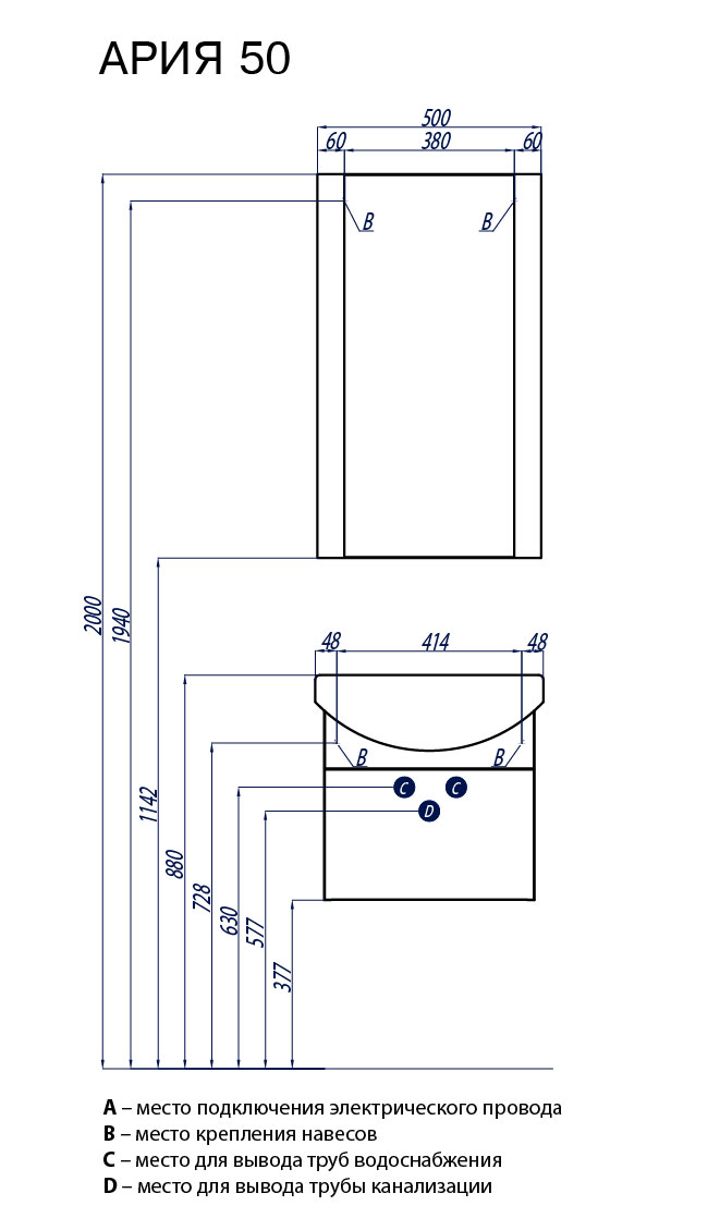 Зеркало AQUATON Ария 50 белое 1A140102AA010