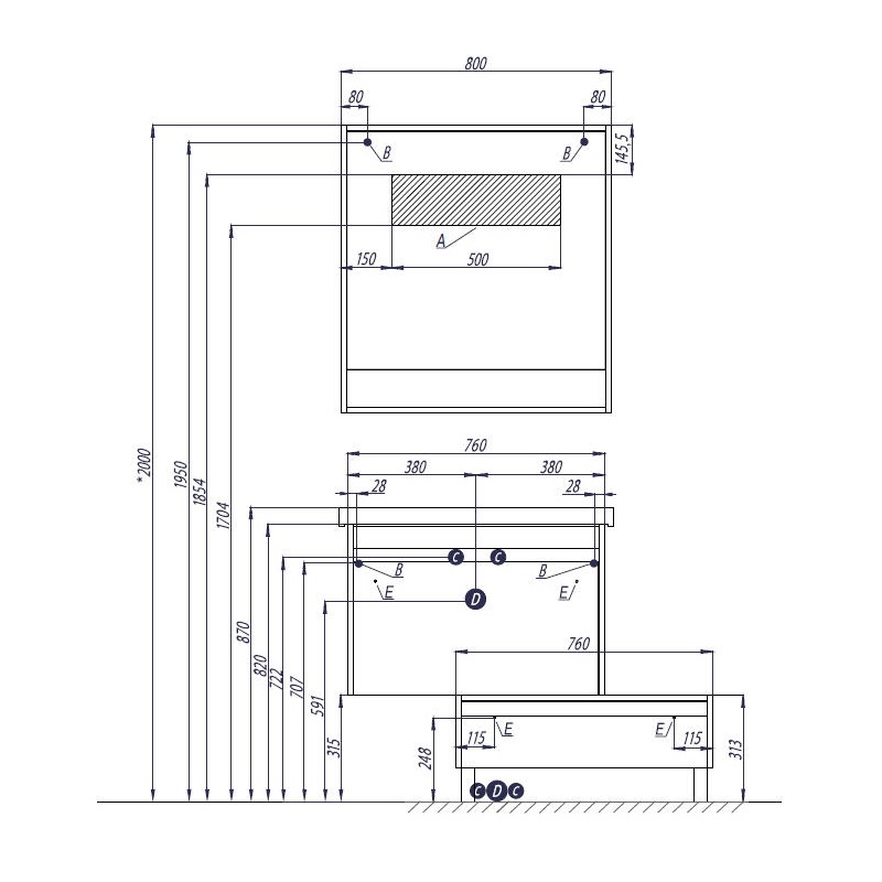 Коллекция выполнена в популярном размере 800 мм. В размере 800 мм к тумбе предлагается зеркало.