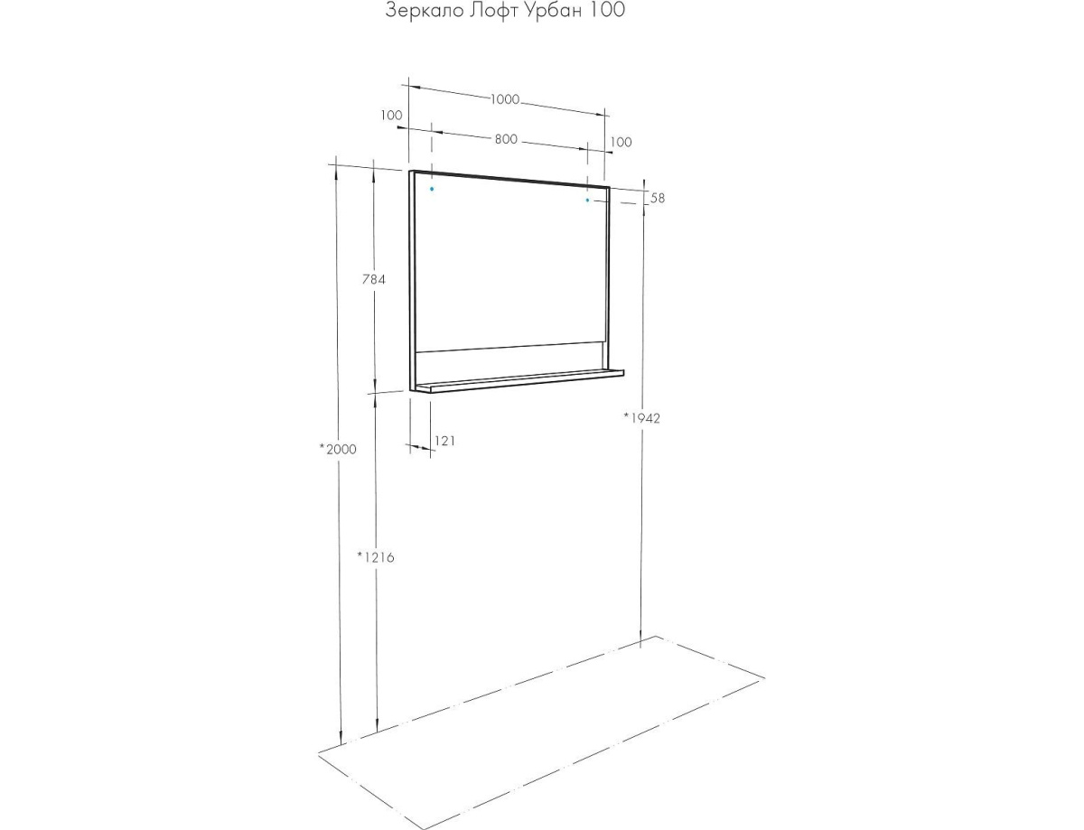 Зеркало Акватон Лофт Урбан 100 см 1A248002LQX50, обрамленное по периметру металлическим профилем и полочкой с ограничителем, который препятствует падению предметов, цвет – дуб орегон.