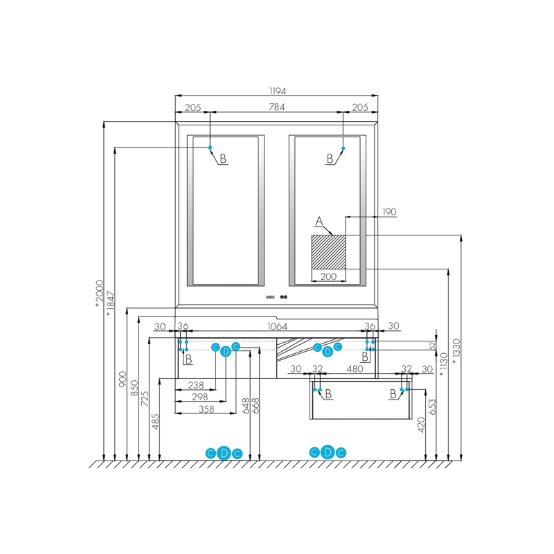 Используемые при производстве материалы отличаются долговечностью, практичностью и надежностью в процессе использования. Экологичная LED-подсветка, выполненная в форме рамки, идеально сочетается с лаконичным дизайном тумбы и служит функциональным элементом освещения, а используемые светодиоды, экономят до 50% потребляемой мощности и служат в 2 раза дольше люминесцентных ламп. Увеличенная площадь зеркального полотна создает в ванной комнате визуальный эффект расширения пространства.
