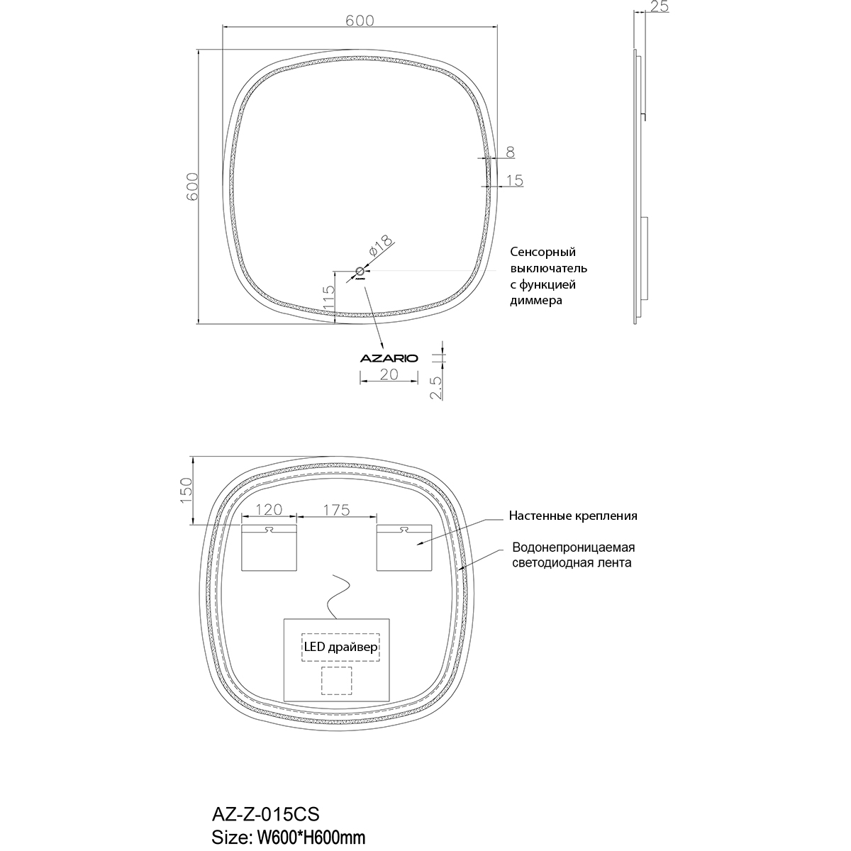 Зеркало AZARIO оснащено LED подсветкой и сенсорным