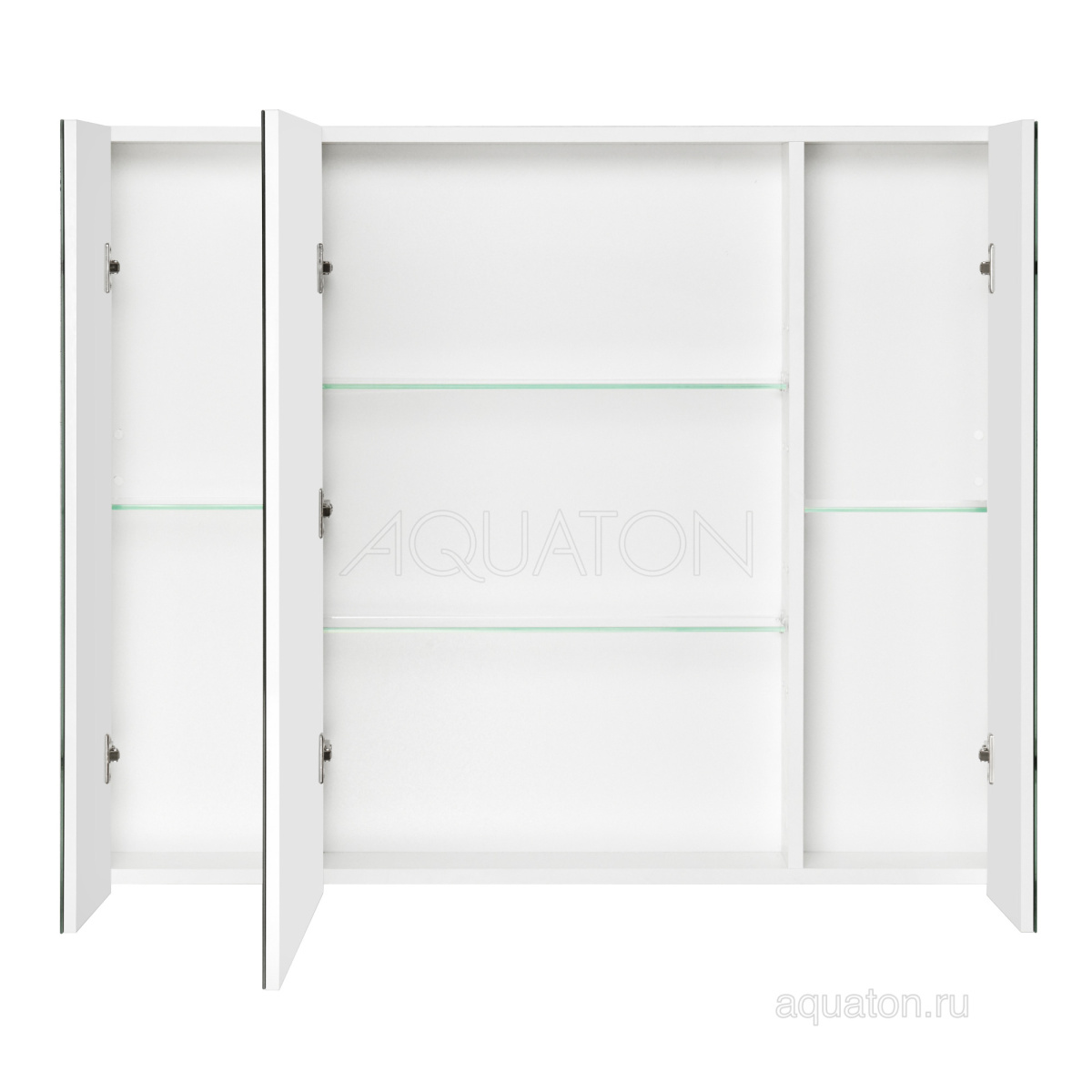 Зеркальный шкаф Беверли 100 в современном стиле выполнен из влагостойкой ламинированной плиты и высококачественной MDF. За тремя зеркальными фасадами-створками, которые снабжены петлями с интегрированной системой плавного закрывания, расположены три вместительных отделения со стеклянными полками, регулируемыми по высоте. Боковые стенки зеркального шкафа окрашены в белый цвет с высокой степенью глянца, что обеспечивает изделию привлекательный внешний вид, а также износостойкость и долговечность.