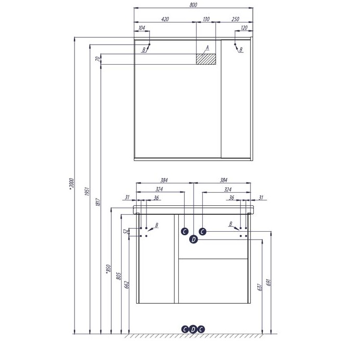Зеркало-шкаф AQUATON Стоун 80 правая, белый 1A228302SX010