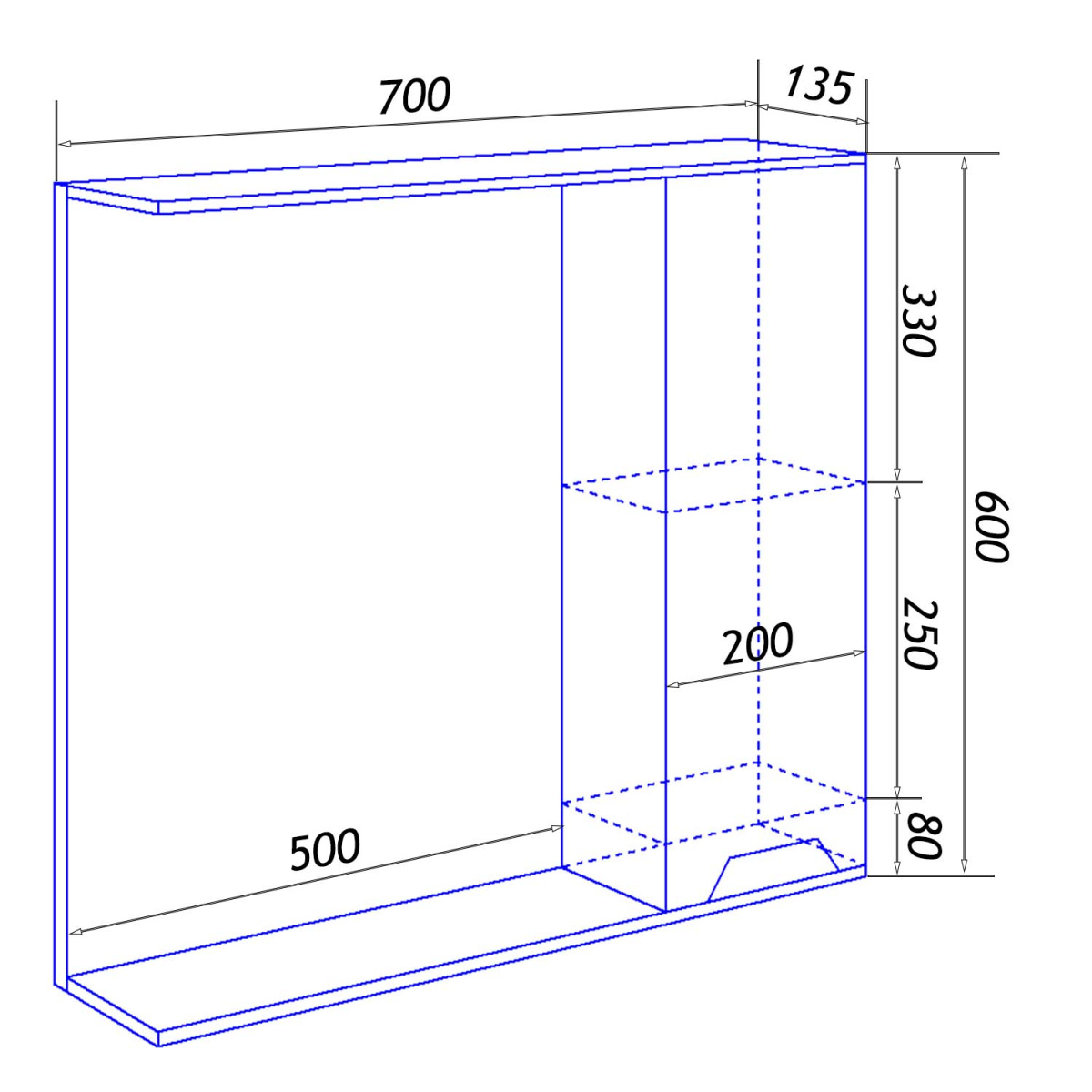 Зеркало-шкаф Loranto Florena 70 700х135х600 правый, светлый бетон CS00086985