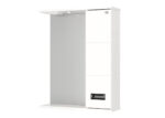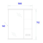 Справа от зеркала за распашной дверцей с механизмом плавного закрывания расположено отделение для хранения, разделенное на две части горизонтальной полочкой, под зеркалом – открытая полочка для косметических средств или декоративных элементов.